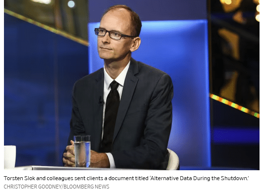“My assembly line of data that comes through just is getting thinner and thinner. So that’s why in desperation, I have gone out and looked at indicators that I would not normally spend too much time on,” said Torsten Slok, chief economist at Apollo Global Management.